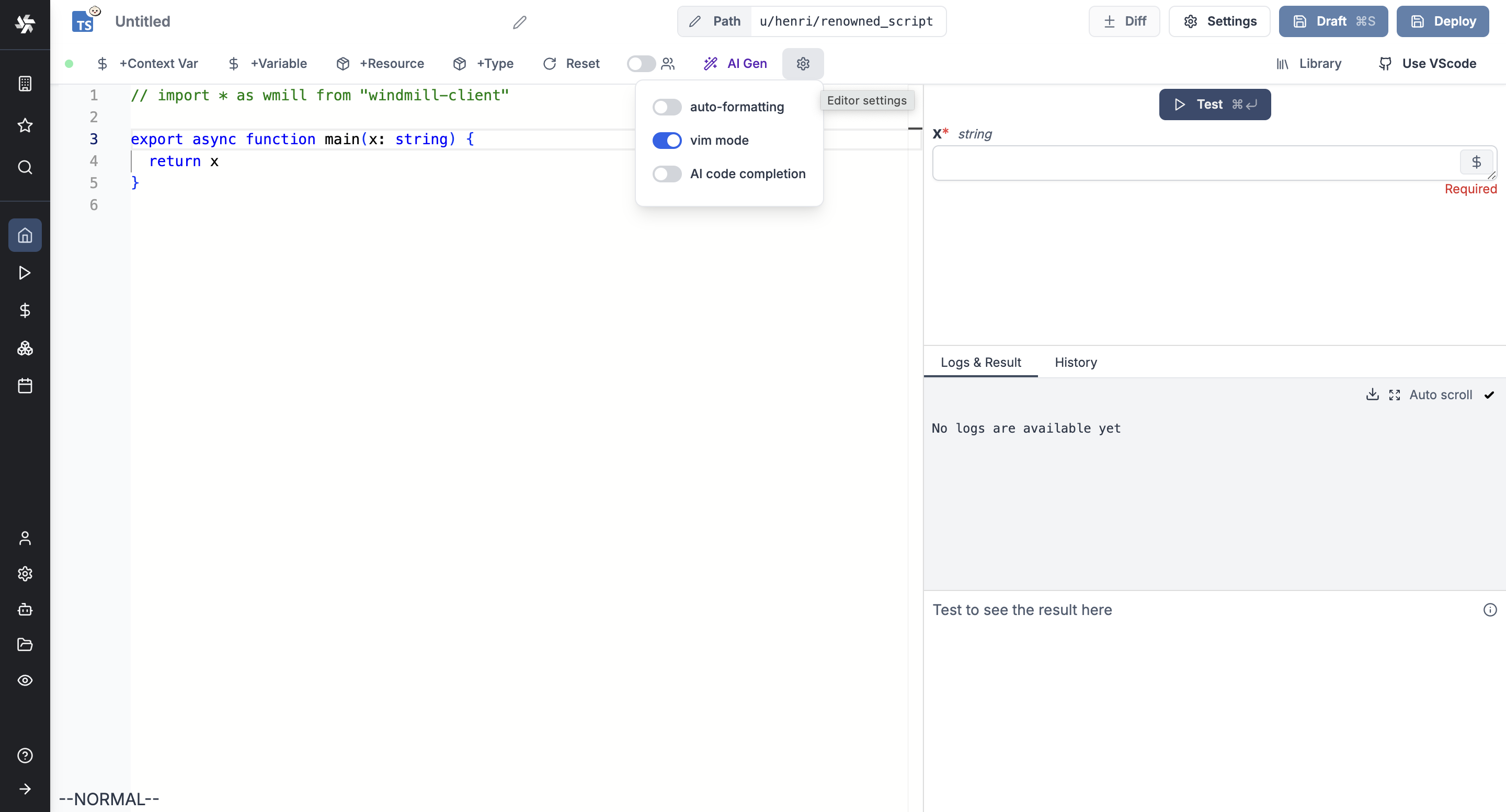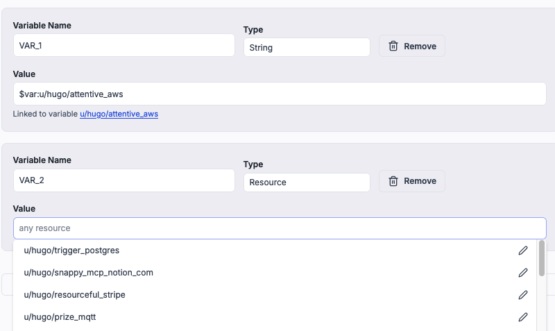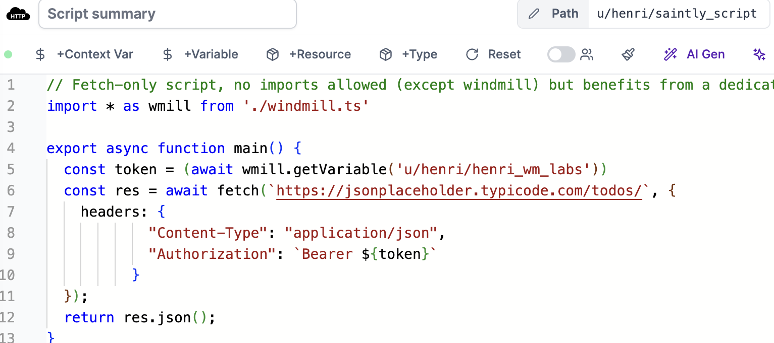 - Built-in helpers for accessing Windmill variables and resources.