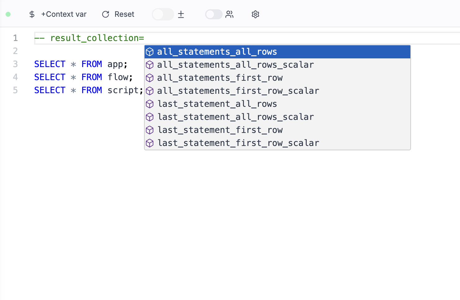 - Create custom contextual variables that will act as env variables for all jobs within a workspace.